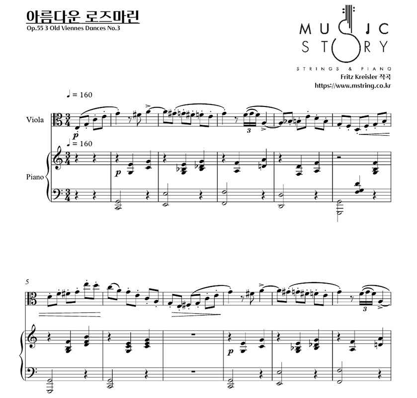 [비올라 솔로] 크라이슬러 - 아름다운로즈마린 (피아노 반주 악보 포함)