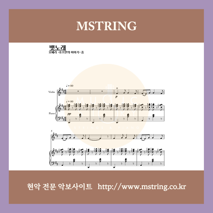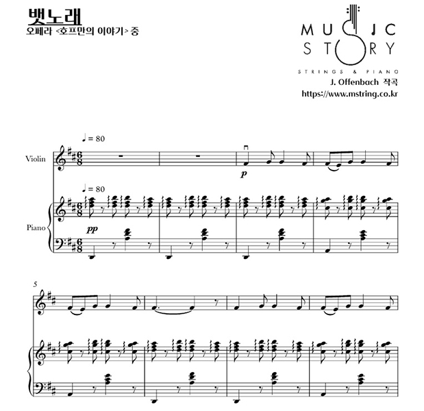 [바이올린 솔로] 오펜바흐 - 호프만의 이야기 : 뱃노래 (피아노 반주 악보 포함)