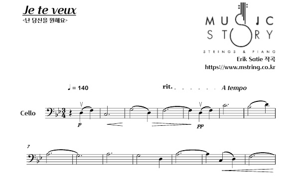 [첼로 솔로] E.Satie - Je Te Veux (피아노 반주 악보 포함)